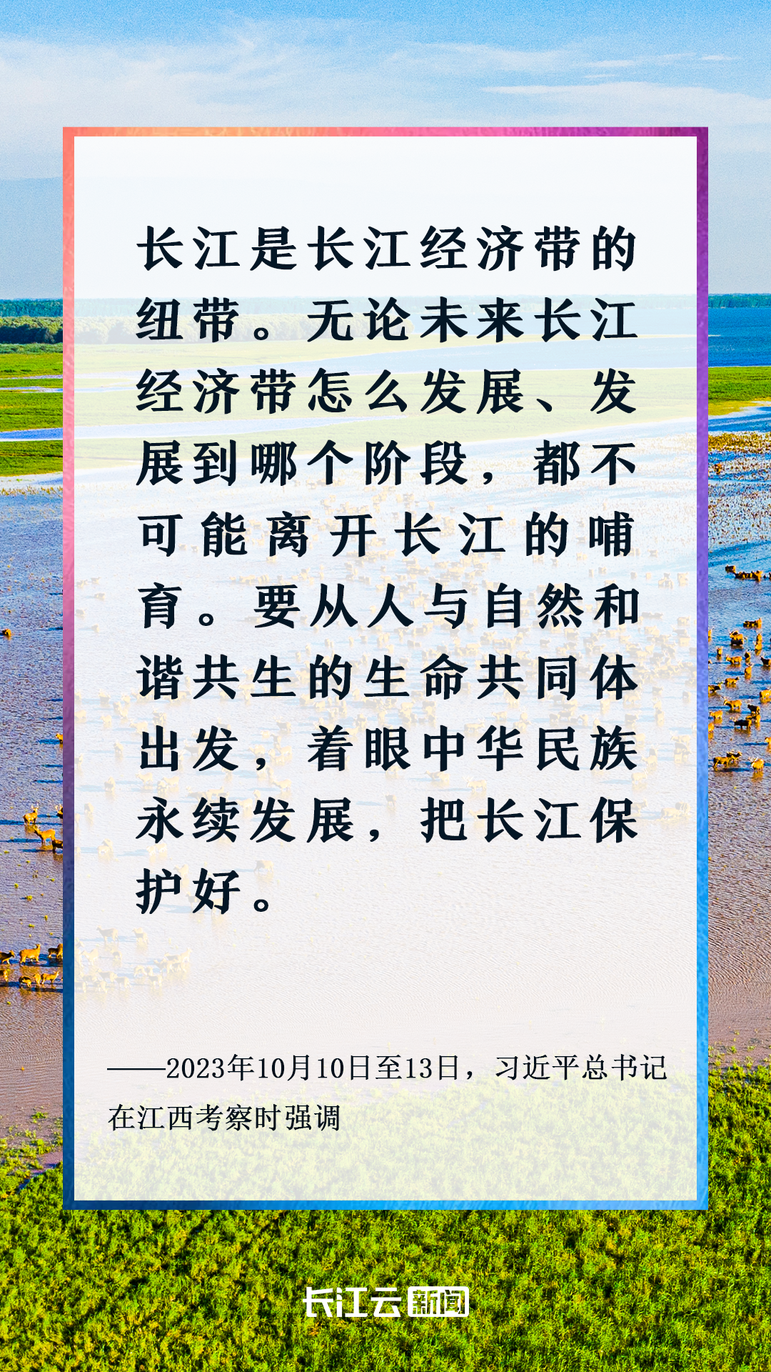 在長(zhǎng)江的見(jiàn)證下,人們心手相連,共同繪制出一幅人與自然和諧共生的美好圖景。