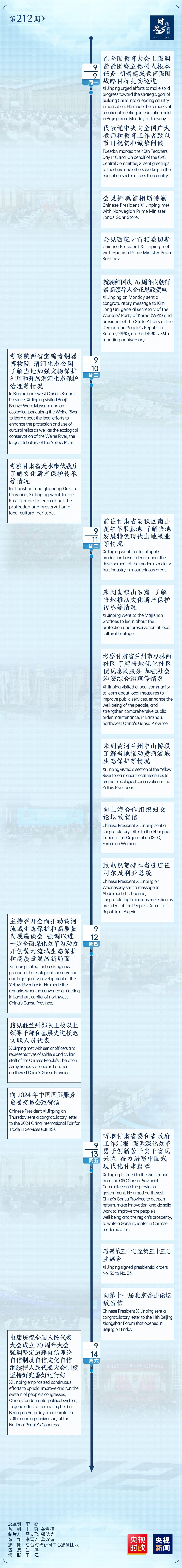 時政微周刊丨總書記的一周(9月9日—9月15日)