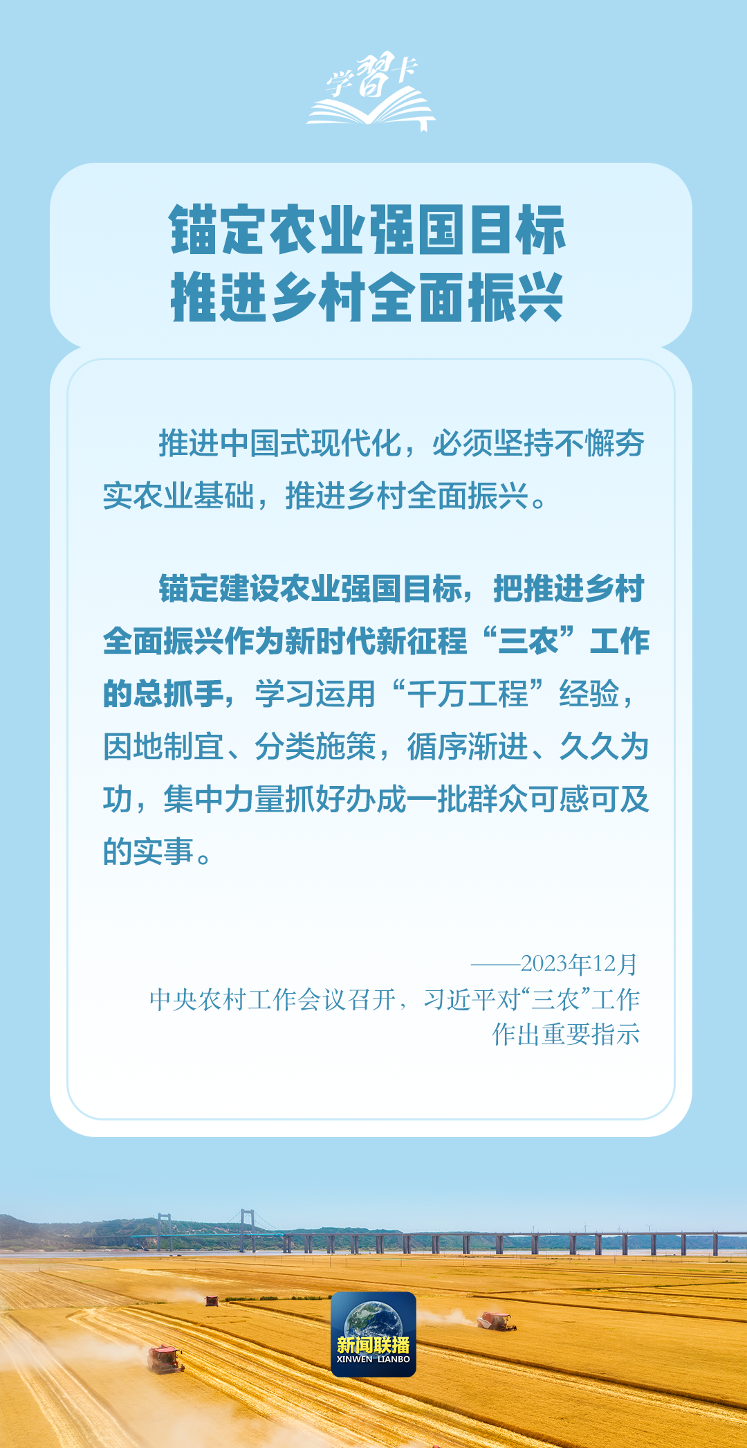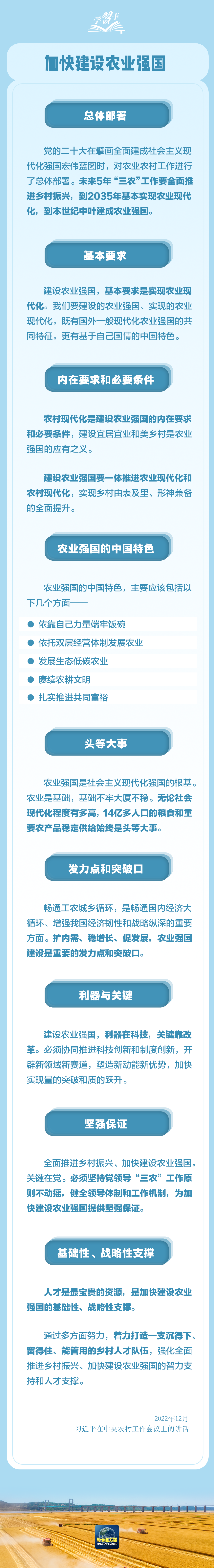 農(nóng)業(yè)農(nóng)村農(nóng)民問題是關(guān)系國計民生的根本性問題,農(nóng)業(yè)強國是社會主義現(xiàn)代化強國的根基。習(xí)近平總書記強調(diào),實現(xiàn)高質(zhì)量發(fā)展,也離不開農(nóng)業(yè)發(fā)展。拓展現(xiàn)代化發(fā)展空間,農(nóng)業(yè)農(nóng)村是大有可為的廣闊天地。