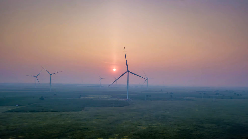科爾沁大草原上,牛羊健碩。藍天白云下,一排排巨型“風車”緩緩旋轉(zhuǎn),在古老草原上勾勒出現(xiàn)代的“天際線”。這里是內(nèi)蒙古通遼市238萬千瓦風電基地。