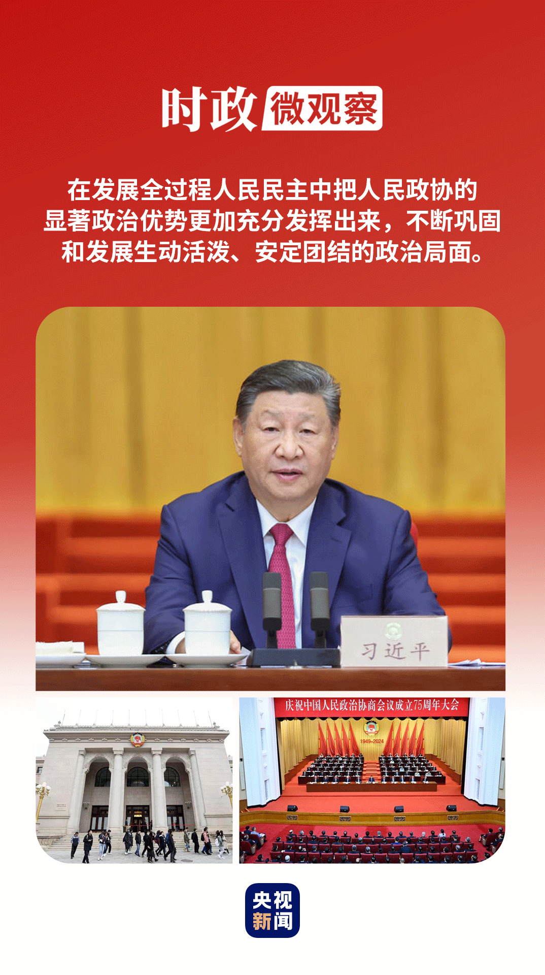 2024年9月20日,全國政協禮堂,中共中央、全國政協隆重舉行慶祝中國人民政治協商會議成立75周年大會。在大會上,習近平總書記高度評價人民政協的歷史貢獻,提出新時代人民政協“十個堅持”的原則,深刻闡述人民政協的鮮明中國特色和顯著政治優(yōu)勢,對不斷推進協商民主廣泛多層制度化發(fā)展提出明確要求,對做好當前和今后一個時期人民政協工作作出全面部署。