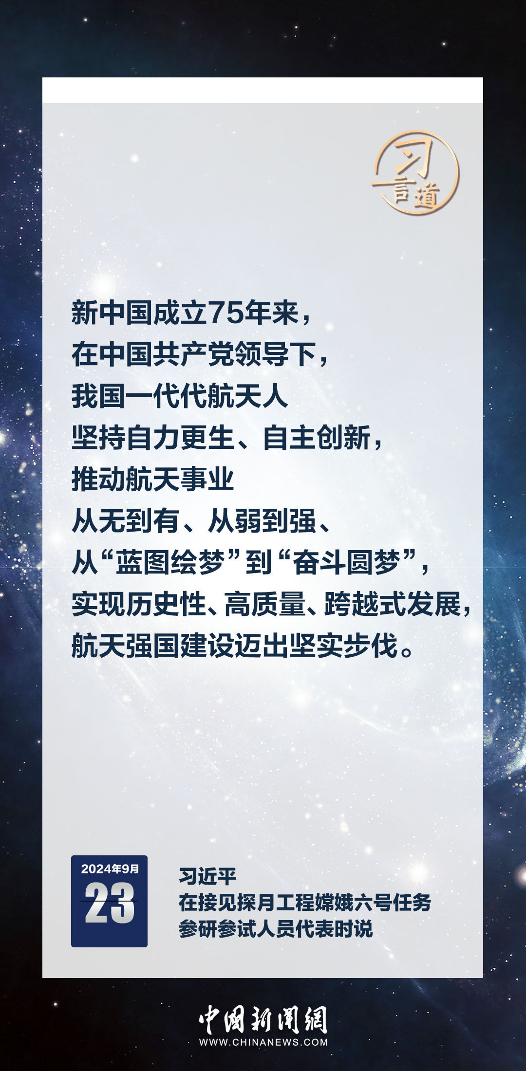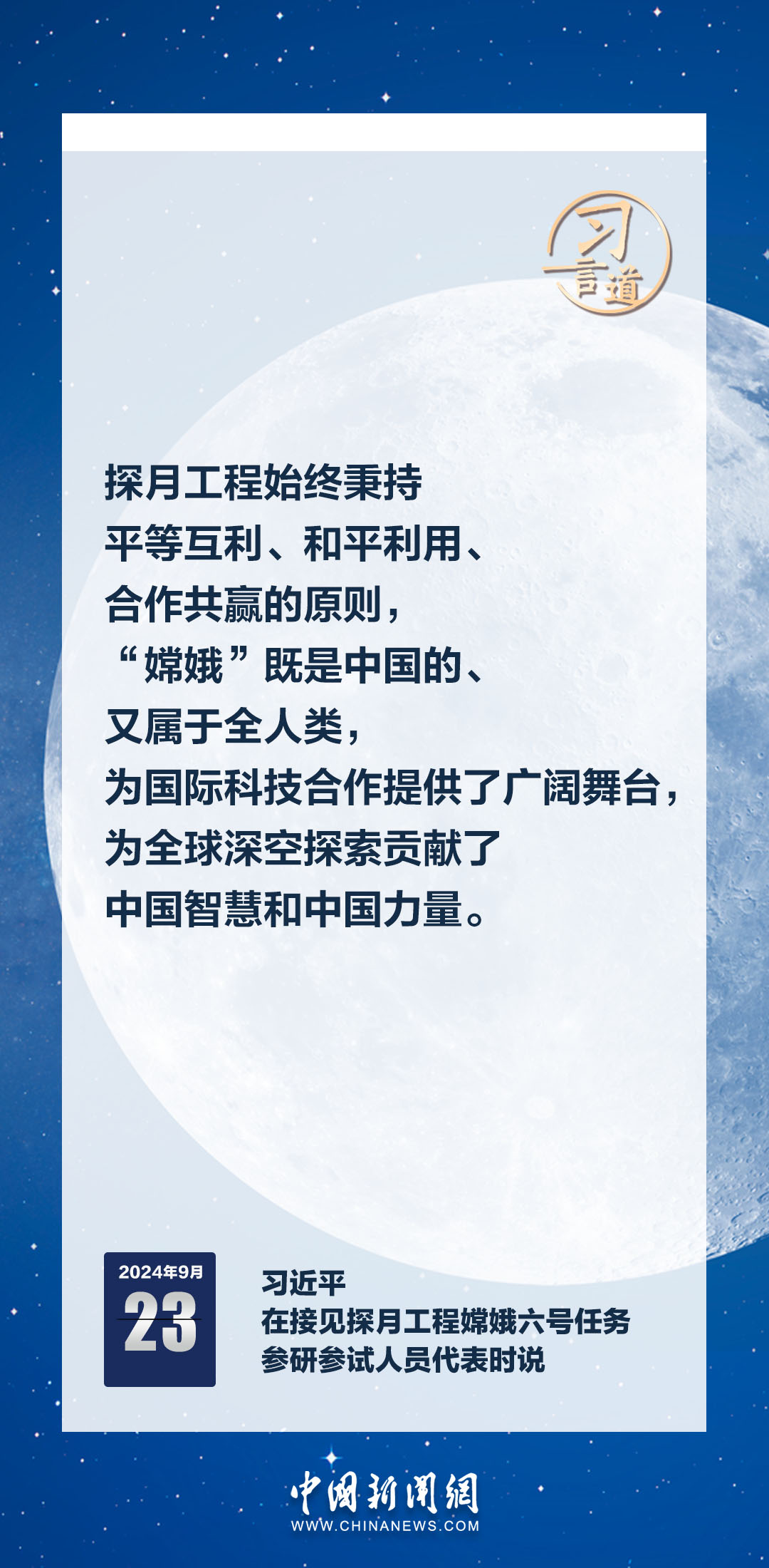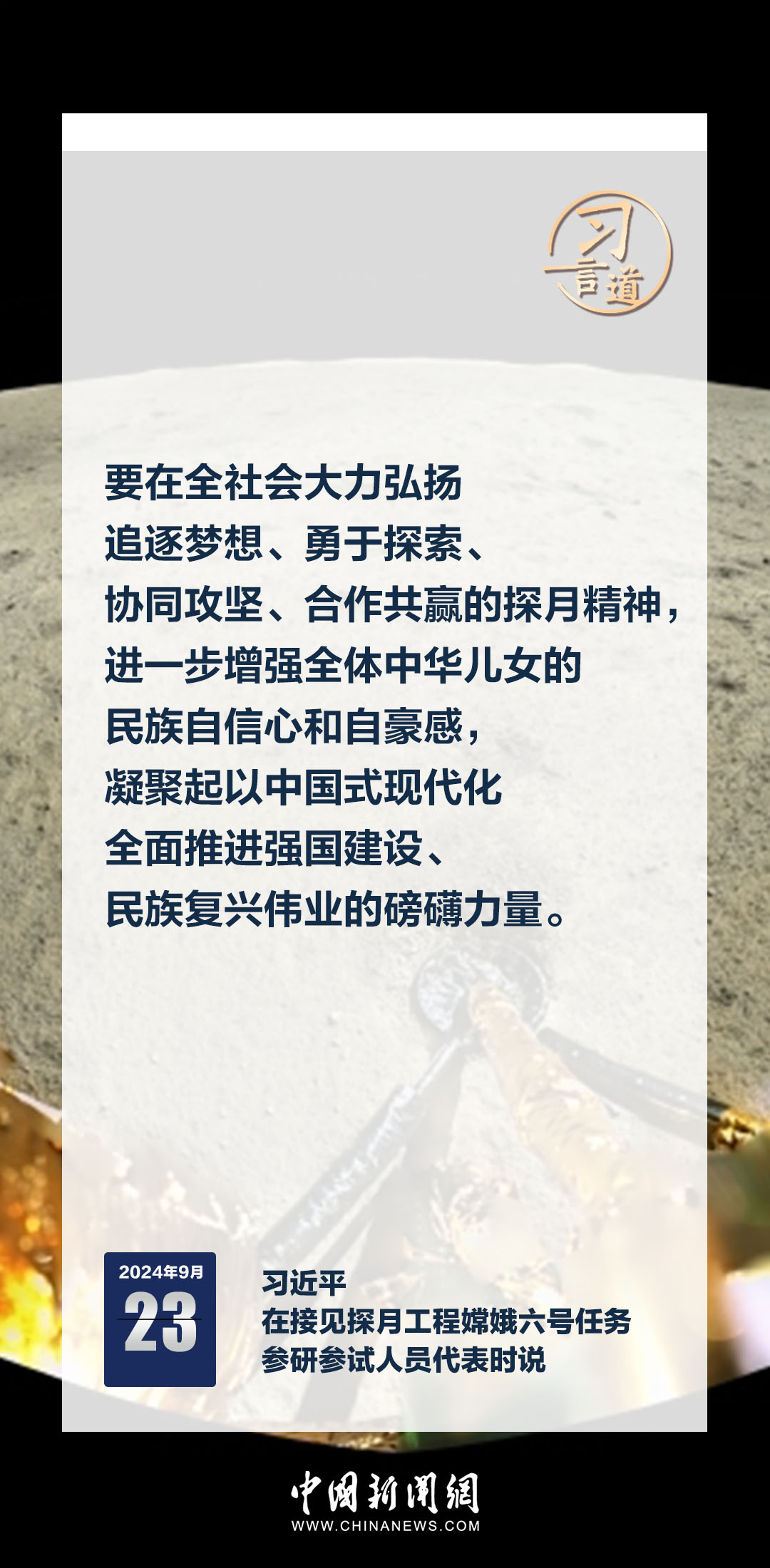 中共中央總書記、國(guó)家主席、中央軍委主席習(xí)近平23日在人民大會(huì)堂接見探月工程嫦娥六號(hào)任務(wù)參研參試人員代表時(shí)發(fā)表重要講話。習(xí)近平指出——