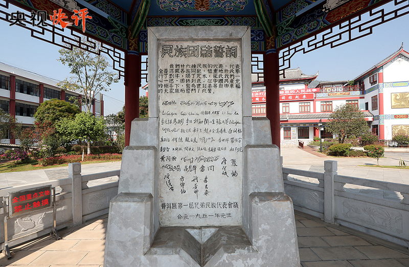 普洱民族團(tuán)結(jié)誓詞碑被譽(yù)為“新中國(guó)民族團(tuán)結(jié)第一碑”。1950年,云南普洱專區(qū)各族代表應(yīng)邀到北京參加新中國(guó)成立一周年慶祝活動(dòng),受到毛澤東等黨和國(guó)家領(lǐng)導(dǎo)人親切接見。1951年元旦,普洱專區(qū)各族群眾舉行盟誓大會(huì),以少數(shù)民族的風(fēng)俗習(xí)慣立下誓詞碑。盟誓立碑后,各民族兄弟姐妹用實(shí)際行動(dòng)踐行“一心一德跟黨走”的錚錚誓言,推動(dòng)邊疆地區(qū)經(jīng)濟(jì)社會(huì)發(fā)展取得了歷史性成就,書寫了民族團(tuán)結(jié)進(jìn)步生動(dòng)篇章。