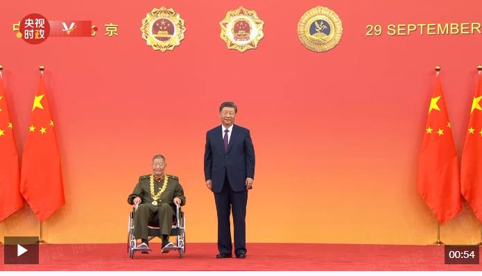 中華人民共和國(guó)國(guó)家勛章和國(guó)家榮譽(yù)稱號(hào)頒授儀式于9月29日上午10時(shí)在人民大會(huì)堂隆重舉行。中共中央總書記、國(guó)家主席、中央軍委主席習(xí)近平向“共和國(guó)勛章”獲得者黃宗德頒授勛章。