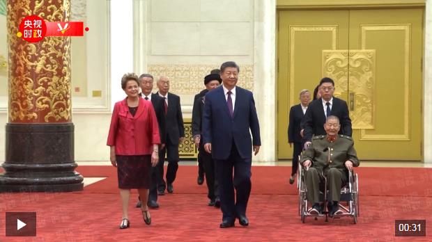 習近平指出,75年來,世界上有很多與中國人民志同道合、風雨同舟的老朋友、好朋友,今天被授予“友誼勛章”的迪爾瑪·羅塞芙女士就是其中的杰出代表。中國人民永遠不會忘記那些為中國發(fā)展、增進中國人民同各國人民友誼作出突出貢獻的國際友人。中國人民愿攜手世界各國人民,維護世界和平,促進共同發(fā)展,推動構(gòu)建人類命運共同體,開創(chuàng)人類更加美好的未來。