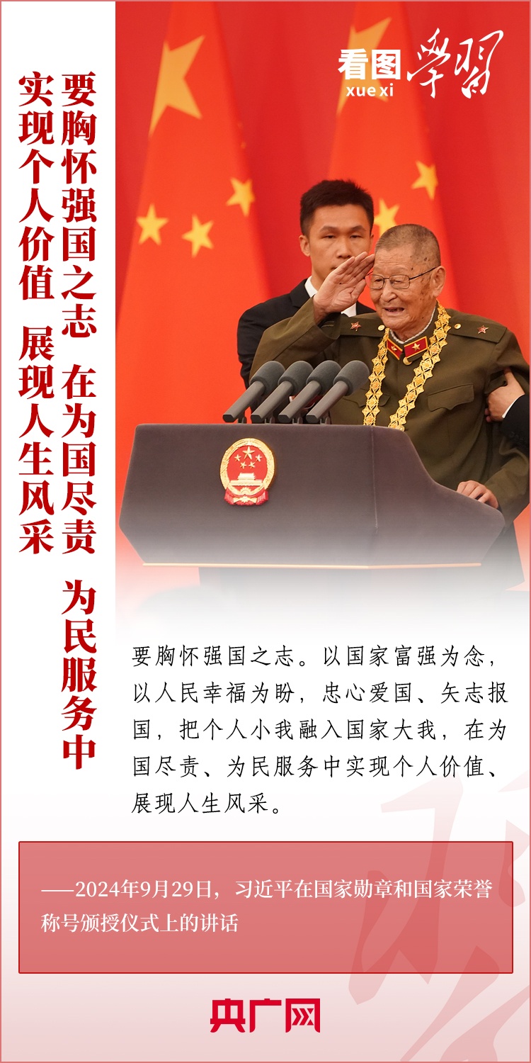 9月29日,中華人民共和國國家勛章和國家榮譽稱號頒授儀式在北京舉行,習(xí)近平總書記向國家勛章和國家榮譽稱號獲得者頒授勛章獎?wù)虏l(fā)表重要講話??倳洀娬{(diào),全黨全國各族人民要以英雄模范為榜樣,團結(jié)奮進、砥礪前行,匯聚起共襄強國盛舉的磅礴力量。一起來學(xué)習(xí)!