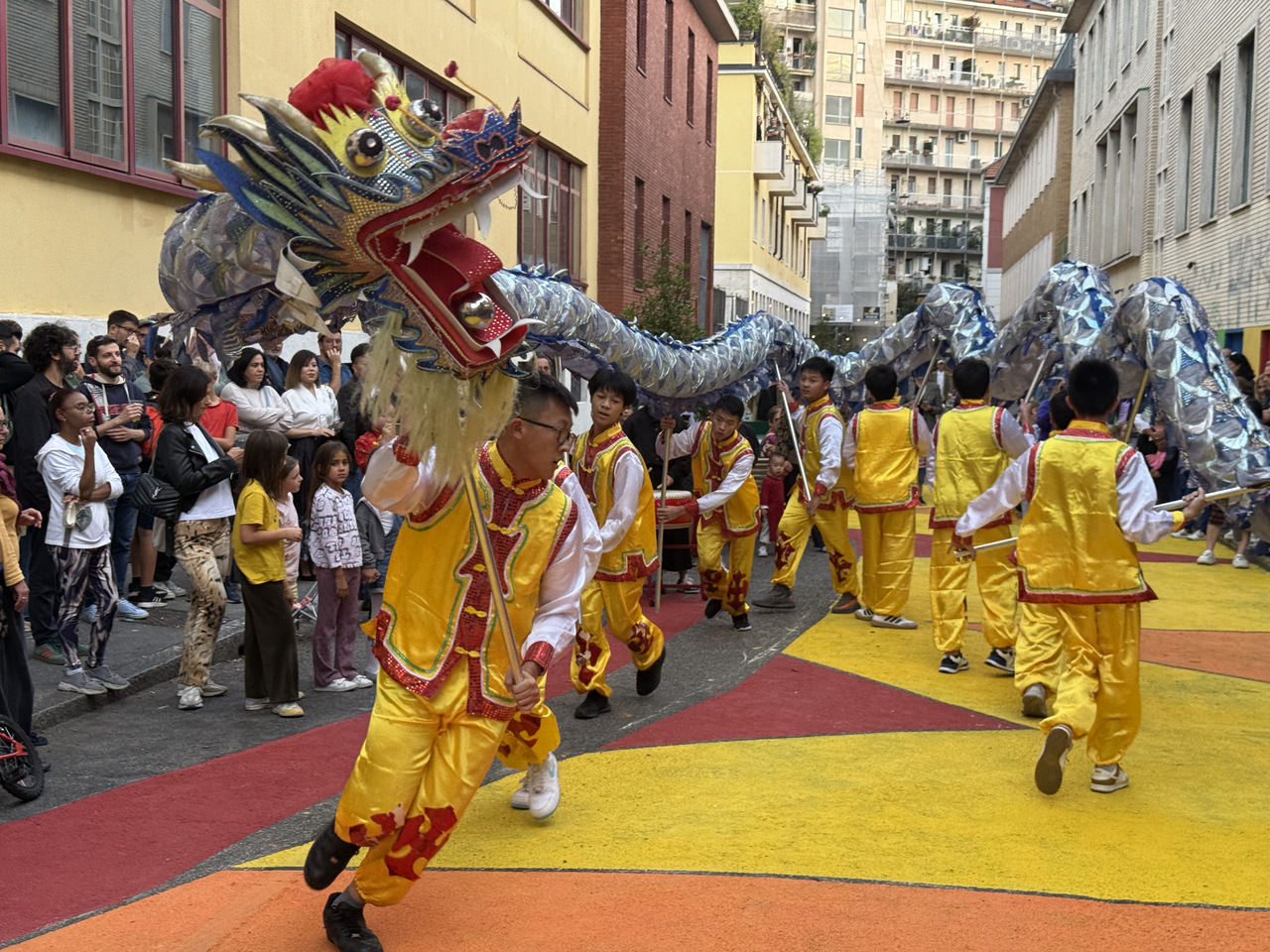華文學(xué)校舞龍表演亮相意大利米蘭街頭 拍友 趙建斌 攝