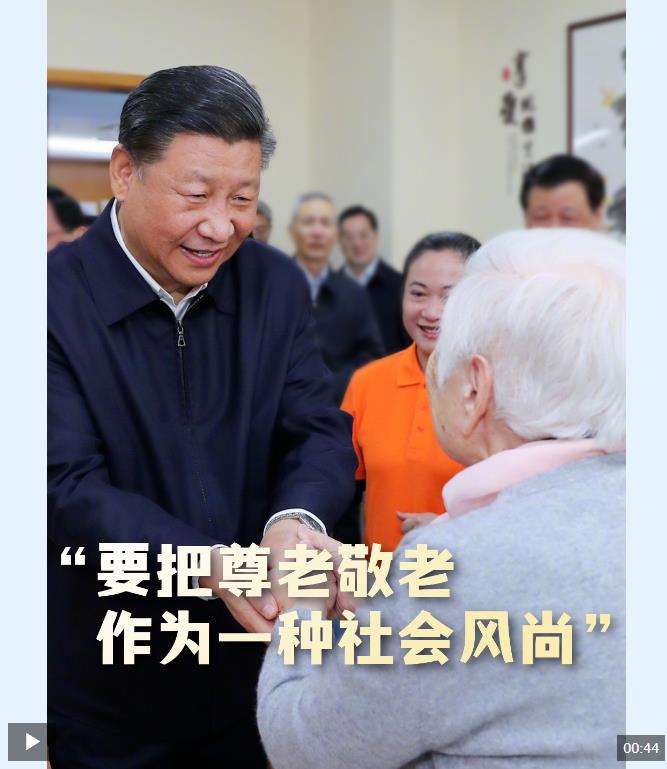 習近平總書記始終關心老年群體、重視老齡事業(yè)。在赴各地考察調研時,習近平走到哪里,就把尊老敬老的風尚帶到哪里。從鄉(xiāng)村到社區(qū),從養(yǎng)老機構到養(yǎng)老服務站……一次次噓寒問暖發(fā)乎于心,一份份關心關愛踐之于行。習近平總書記的身體力行,為全社會作出“尊老敬老”的表率,推動尊老、敬老、愛老、助老蔚然成風。“尊老敬老是中華民族的傳統(tǒng)美德,愛老助老是全社會的共同責任?!薄白屗欣夏耆硕寄芾嫌兴B(yǎng)、老有所依、老有所樂、老有所安。”