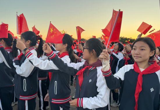 2024年10月1日,天安門(mén)廣場(chǎng)舉行升國(guó)旗儀式,慶祝中華人民共和國(guó)成立75周年。北京2000名大中小學(xué)師生現(xiàn)場(chǎng)觀禮升國(guó)旗儀式。