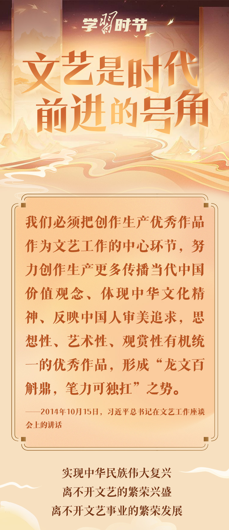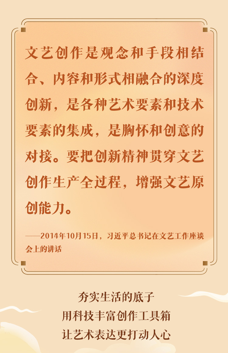 文藝是時(shí)代前進(jìn)的號(hào)角,最能代表一個(gè)時(shí)代的風(fēng)貌,最能引領(lǐng)一個(gè)時(shí)代的風(fēng)氣。十年來(lái),在習(xí)近平總書記的指引下,我國(guó)文藝面貌發(fā)生深刻變化,一系列代表性作品、標(biāo)志性現(xiàn)象和時(shí)代性特征,勾畫了新時(shí)代文藝的獨(dú)特景觀,彰顯了新時(shí)代文藝的豐富內(nèi)涵。