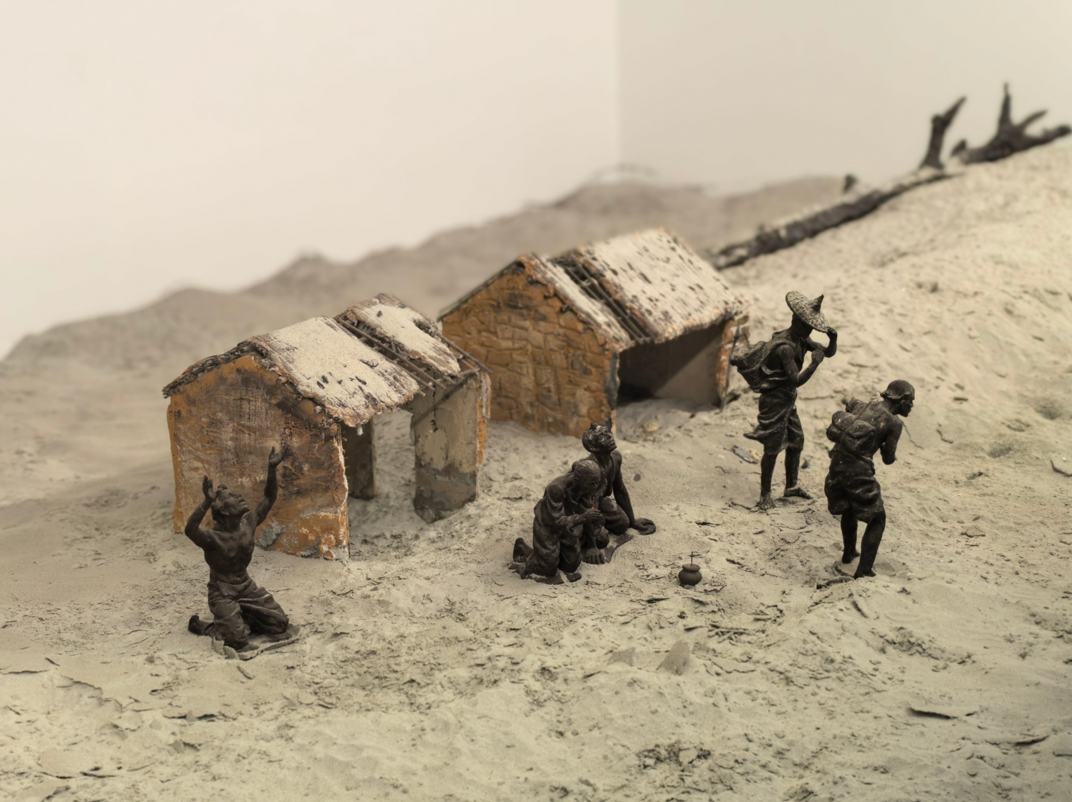 谷文昌紀(jì)念館里展示的當(dāng)年東山人民飽受風(fēng)沙災(zāi)害之苦的情景。(總臺央廣記者潘毅拍攝)