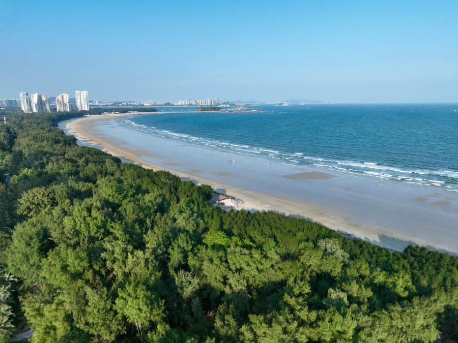 郁郁蔥蔥的東山縣沿海防護(hù)林(無人機(jī)拍攝)。新華社記者 姜克紅 攝
