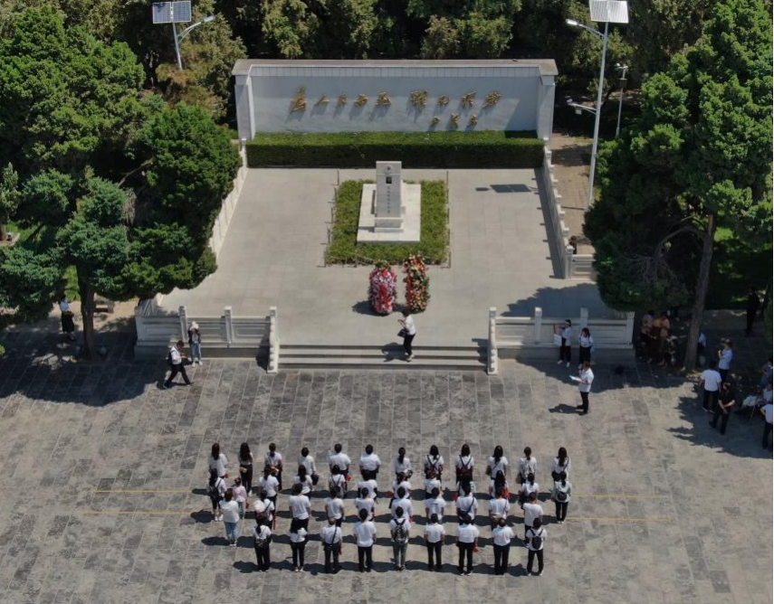 2021年6月24日,參觀者在位于河南省蘭考縣的焦裕祿紀(jì)念園瞻仰焦裕祿烈士墓(無人機(jī)照片)。新華社記者 李安 攝