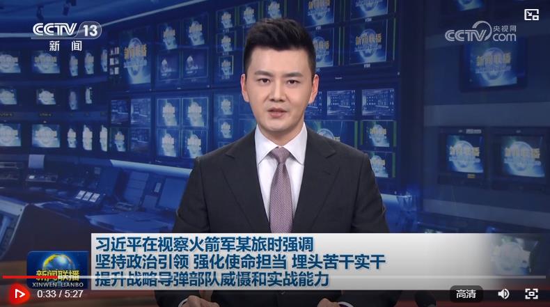 中共中央總書記、國家主席、中央軍委主席習(xí)近平17日到火箭軍某旅視察,強(qiáng)調(diào)要深入貫徹新時(shí)代強(qiáng)軍思想,貫徹新時(shí)代軍事戰(zhàn)略方針,把握戰(zhàn)略導(dǎo)彈部隊(duì)建設(shè)和作戰(zhàn)運(yùn)用特點(diǎn)規(guī)律,堅(jiān)持政治引領(lǐng),強(qiáng)化使命擔(dān)當(dāng),埋頭苦干實(shí)干,推進(jìn)部隊(duì)建設(shè)高質(zhì)量發(fā)展,提升戰(zhàn)略威懾和實(shí)戰(zhàn)能力,堅(jiān)決完成黨和人民賦予的各項(xiàng)任務(wù)。