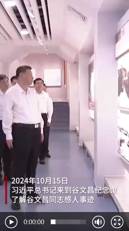 2024年10月15日,習近平總書記來到谷文昌紀念館,了解谷文昌同志感人事跡,聽取當?shù)貍鞒屑t色基因情況介紹,同谷文昌干部學院教師、學員代表親切交流。
