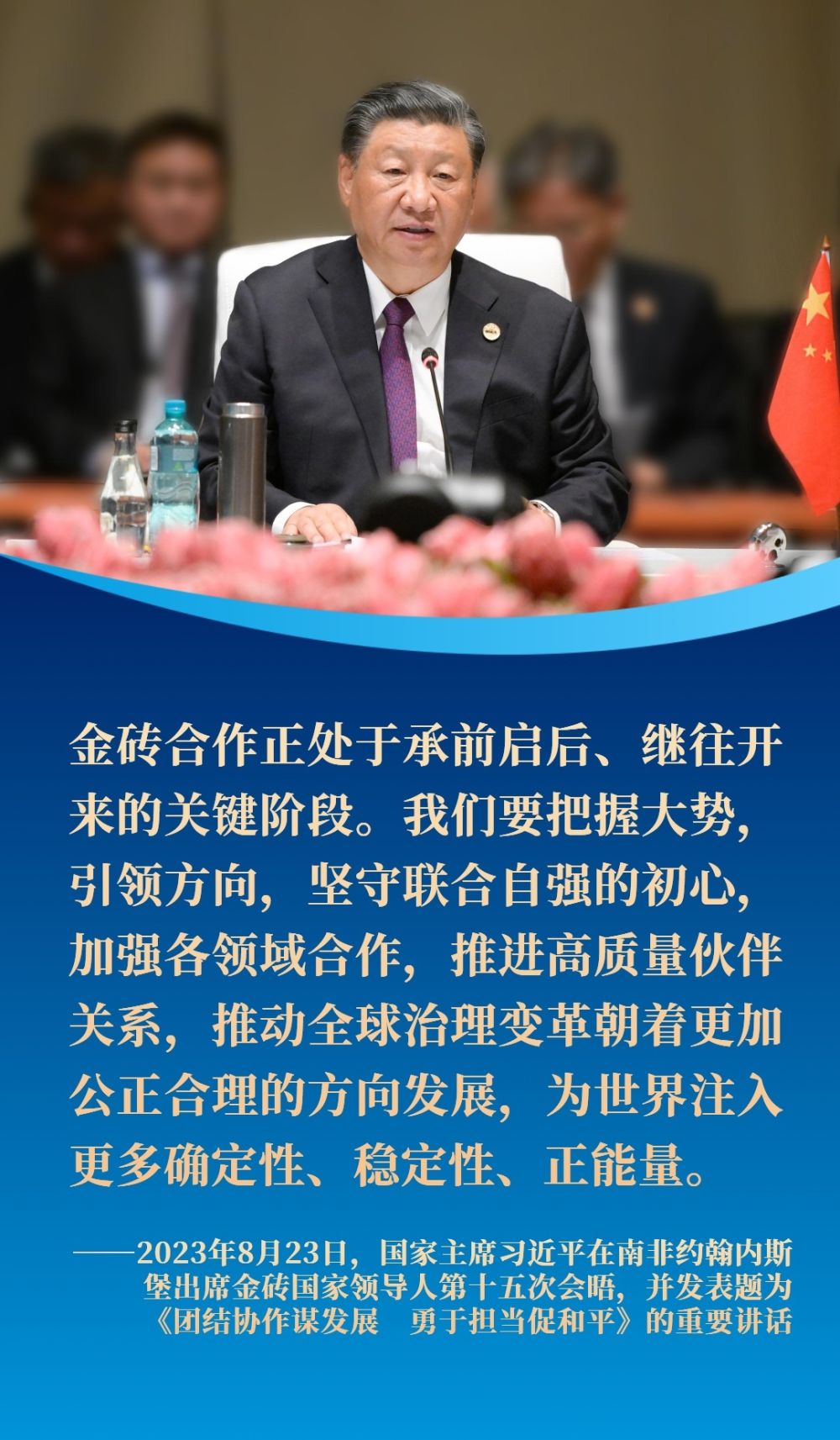 跨越山海,相互成就。中國將同金磚伙伴一道,秉持開放包容、合作共贏精神,堅守團結自強初心,繼續(xù)書寫攜手發(fā)展的精彩故事。