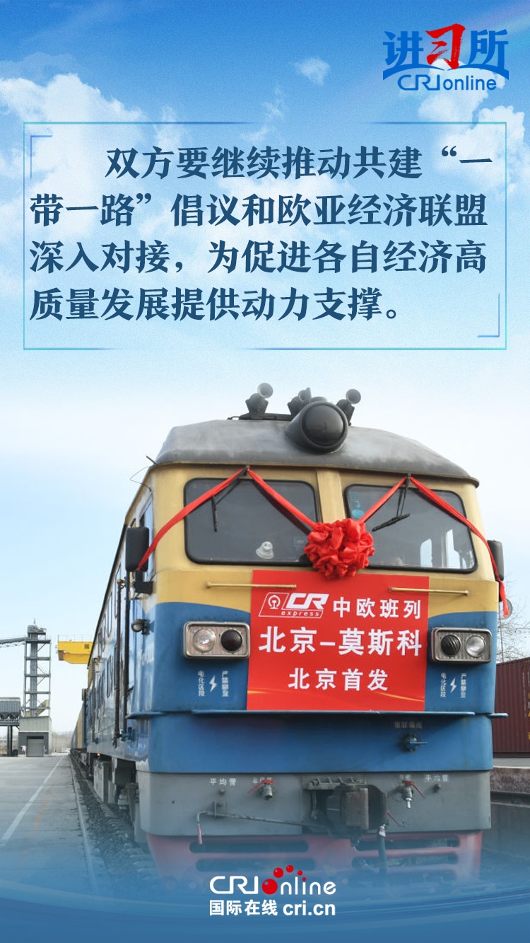 習近平主席在同俄羅斯總統(tǒng)普京會晤時指出,中俄世代友好的深厚情誼不會變,濟世為民的大國擔當不會變。雙方要繼續(xù)推動共建“一帶一路”倡議和歐亞經(jīng)濟聯(lián)盟深入對接,為促進各自經(jīng)濟高質(zhì)量發(fā)展提供動力支撐。