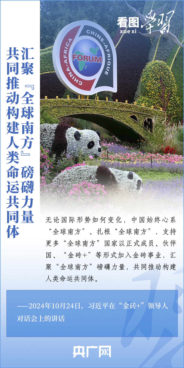“‘全球南方’群體性崛起,是世界大變局的鮮明標(biāo)志。”當(dāng)?shù)貢r間10月24日,國家主席習(xí)近平在俄羅斯喀山出席“金磚+”領(lǐng)導(dǎo)人對話會并發(fā)表重要講話。習(xí)主席深刻闡述了“全球南方”群體性崛起的重要意義,圍繞和平、發(fā)展、文明提出三方面務(wù)實舉措,呼吁與會“金磚+”領(lǐng)導(dǎo)人展現(xiàn)集體智慧和力量,匯聚“全球南方”磅礴力量,共同推動構(gòu)建人類命運(yùn)共同體。一起來學(xué)習(xí)!