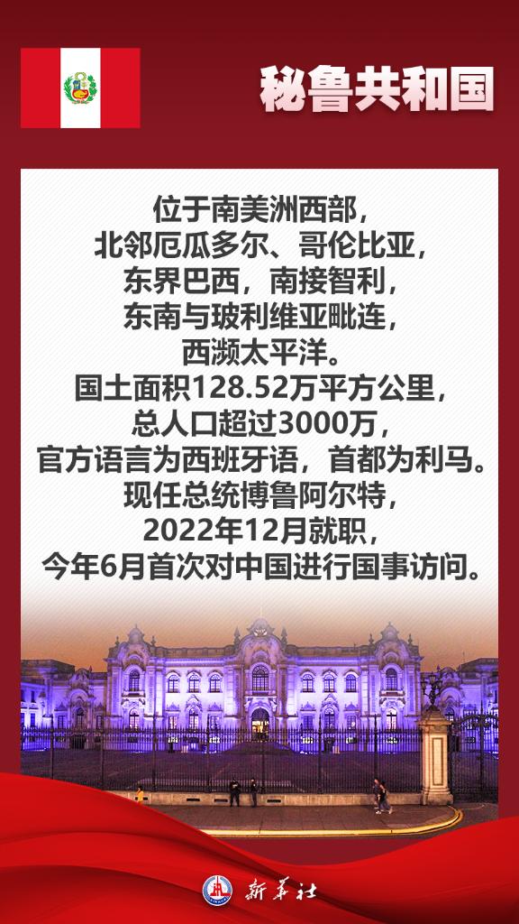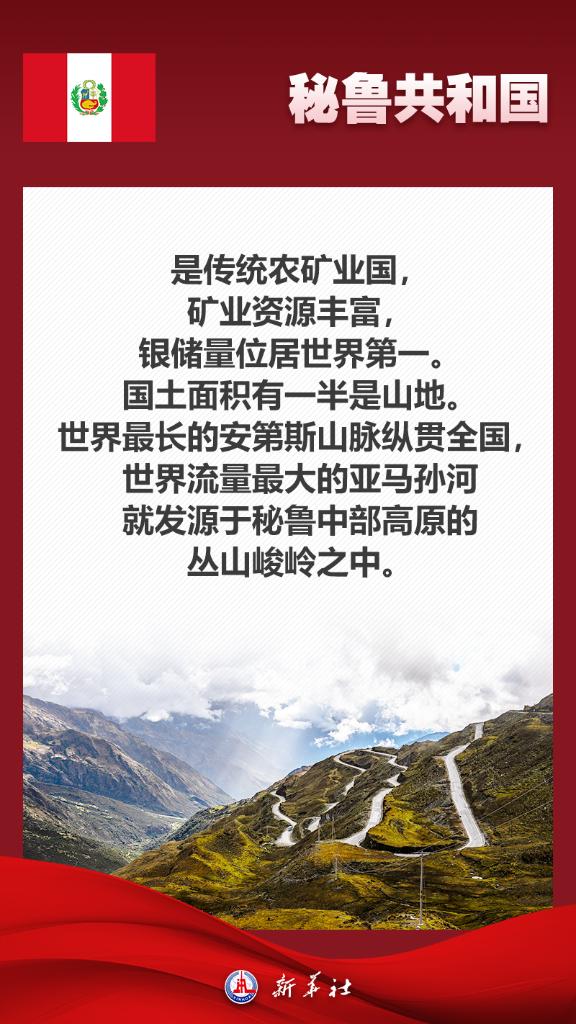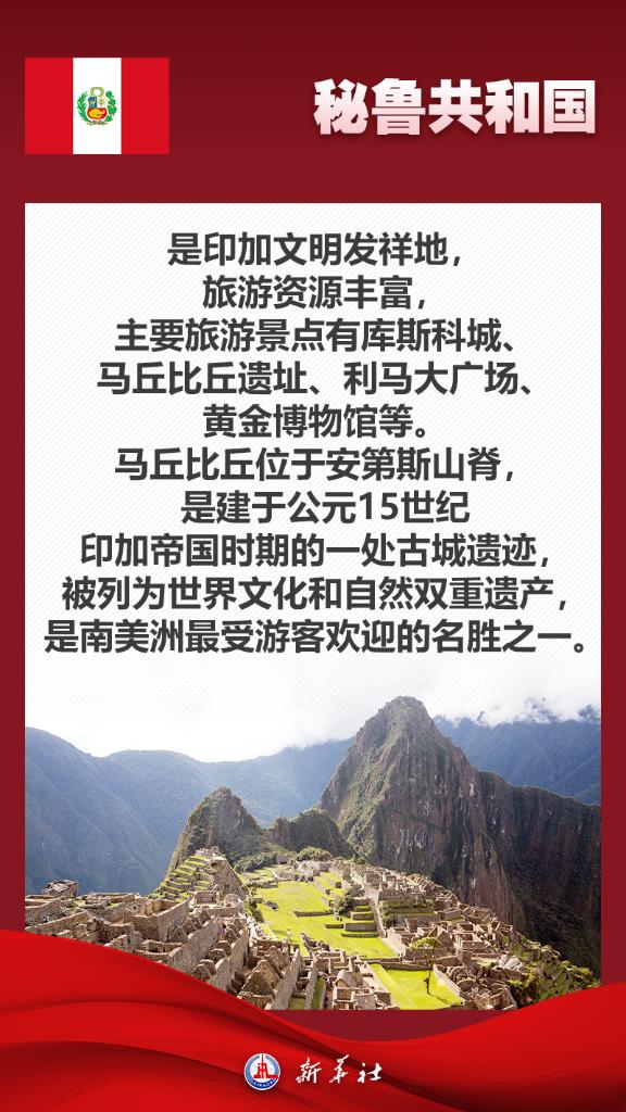 應(yīng)秘魯共和國(guó)總統(tǒng)博魯阿爾特邀請(qǐng),國(guó)家主席習(xí)近平將于11月13日至17日赴利馬出席亞太經(jīng)合組織第三十一次領(lǐng)導(dǎo)人非正式會(huì)議并對(duì)秘魯進(jìn)行國(guó)事訪問(wèn)。秘魯位于南美洲西部,是印加文明發(fā)祥地,也是最早同新中國(guó)建交的拉美國(guó)家之一。關(guān)于秘魯,七張海報(bào)帶你了解更多——