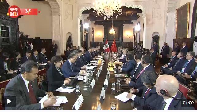 當?shù)貢r間11月14日下午,國家主席習近平在利馬總統(tǒng)府同秘魯總統(tǒng)博魯阿爾特舉行會談。
