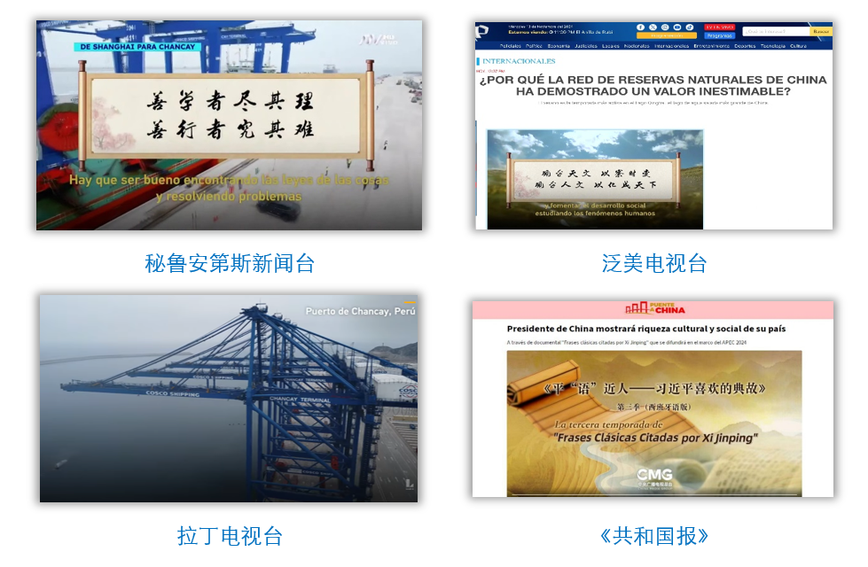 在中國國家主席習(xí)近平應(yīng)秘魯共和國總統(tǒng)博魯阿爾特邀請,赴利馬出席亞太經(jīng)合組織第三十一次領(lǐng)導(dǎo)人非正式會議并對秘魯進行國事訪問之際,由中國中央廣播電視總臺制作的《平“語”近人——習(xí)近平喜歡的典故》第三季(西班牙語版),將于當(dāng)?shù)貢r間11月14日起在秘魯國家廣播電視臺、秘魯電視聯(lián)播網(wǎng)、秘魯廣播節(jié)目集團電視端等多平臺落地播出。當(dāng)?shù)囟嗉抑髁髅襟w對節(jié)目落播進行預(yù)告,引發(fā)秘魯各界普遍期待和廣泛關(guān)注。