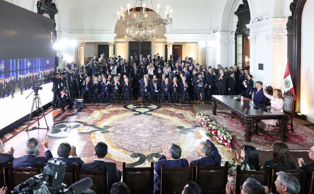 當(dāng)?shù)貢r(shí)間11月14日晚,習(xí)近平主席同博魯阿爾特總統(tǒng)在利馬總統(tǒng)府以視頻方式共同出席錢凱港開港儀式。