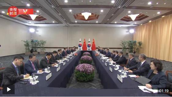 當地時間11月15日,國家主席習近平在利馬出席亞太經合組織領導人非正式會議期間會見韓國總統(tǒng)尹錫悅。