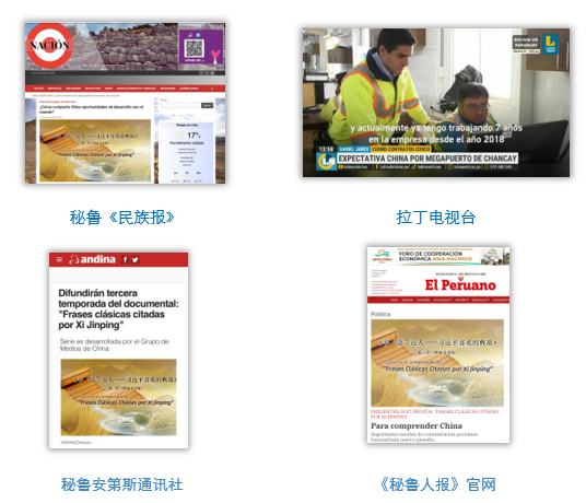 《平“語(yǔ)”近人——習(xí)近平喜歡的典故》第三季(西班牙語(yǔ)版)即日起在秘魯國(guó)家廣播電視臺(tái)、秘魯電視聯(lián)播網(wǎng)、秘魯廣播節(jié)目集團(tuán)電視端、秘魯安第斯新聞臺(tái)、泛美電視臺(tái)、拉丁電視臺(tái)、秘魯《民族報(bào)》等多平臺(tái)落地播出。14日,秘魯最具影響力的官方報(bào)紙《秘魯人報(bào)》及其官網(wǎng)刊發(fā)節(jié)目在秘魯落播的消息。秘魯安第斯通訊社、《共和國(guó)報(bào)》、秘魯EXITOSA電臺(tái)、秘魯消息網(wǎng)以及拉美新聞聯(lián)盟官網(wǎng)等拉美主流媒體播發(fā)相關(guān)報(bào)道。