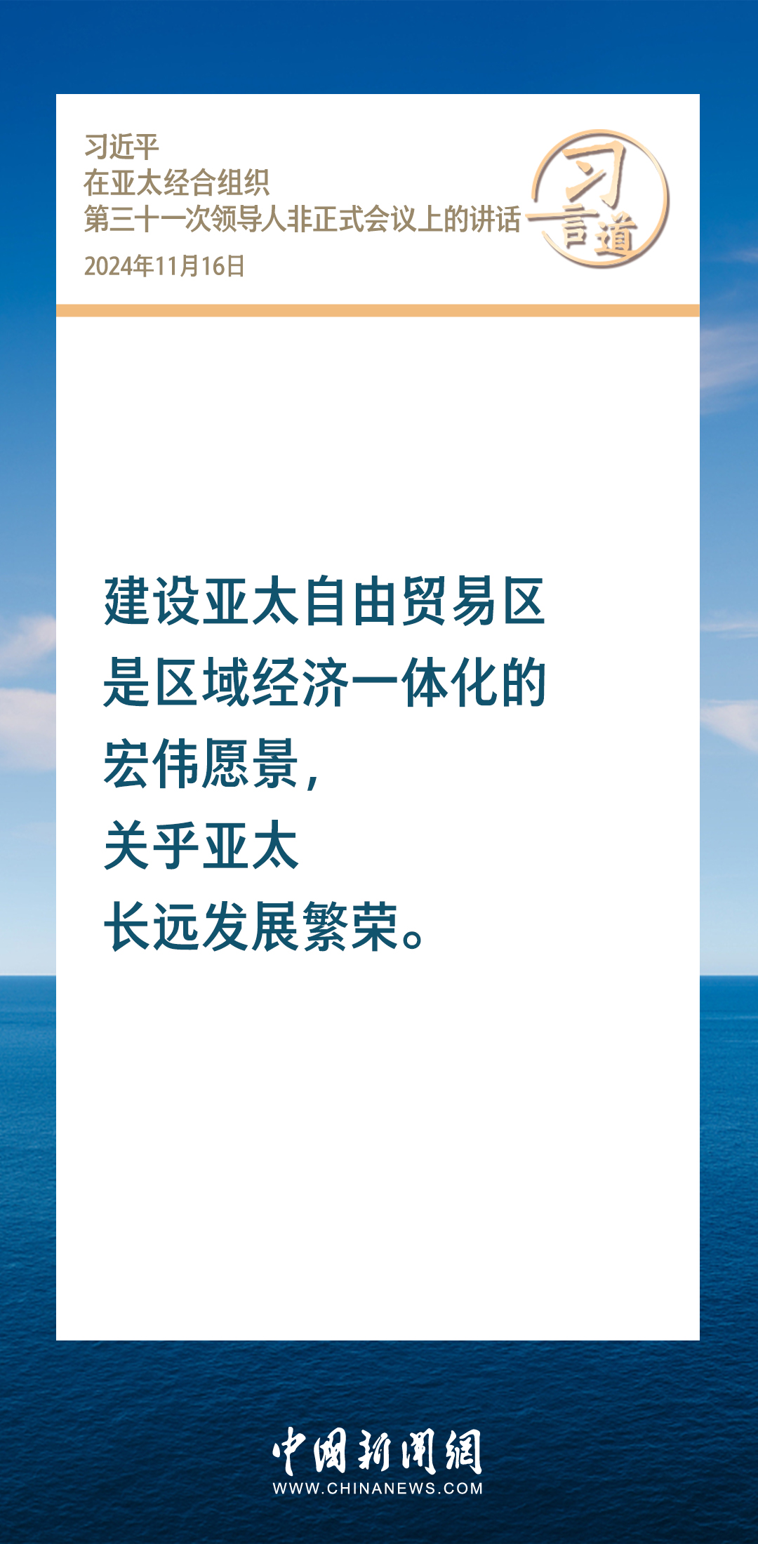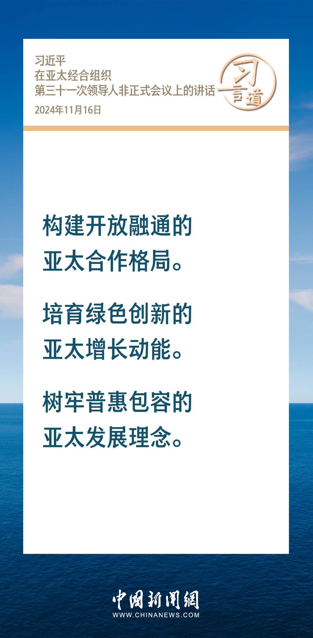 當(dāng)?shù)貢r(shí)間11月16日,國家主席習(xí)近平出席亞太經(jīng)合組織第三十一次領(lǐng)導(dǎo)人非正式會(huì)議并發(fā)表重要講話。習(xí)近平指出——