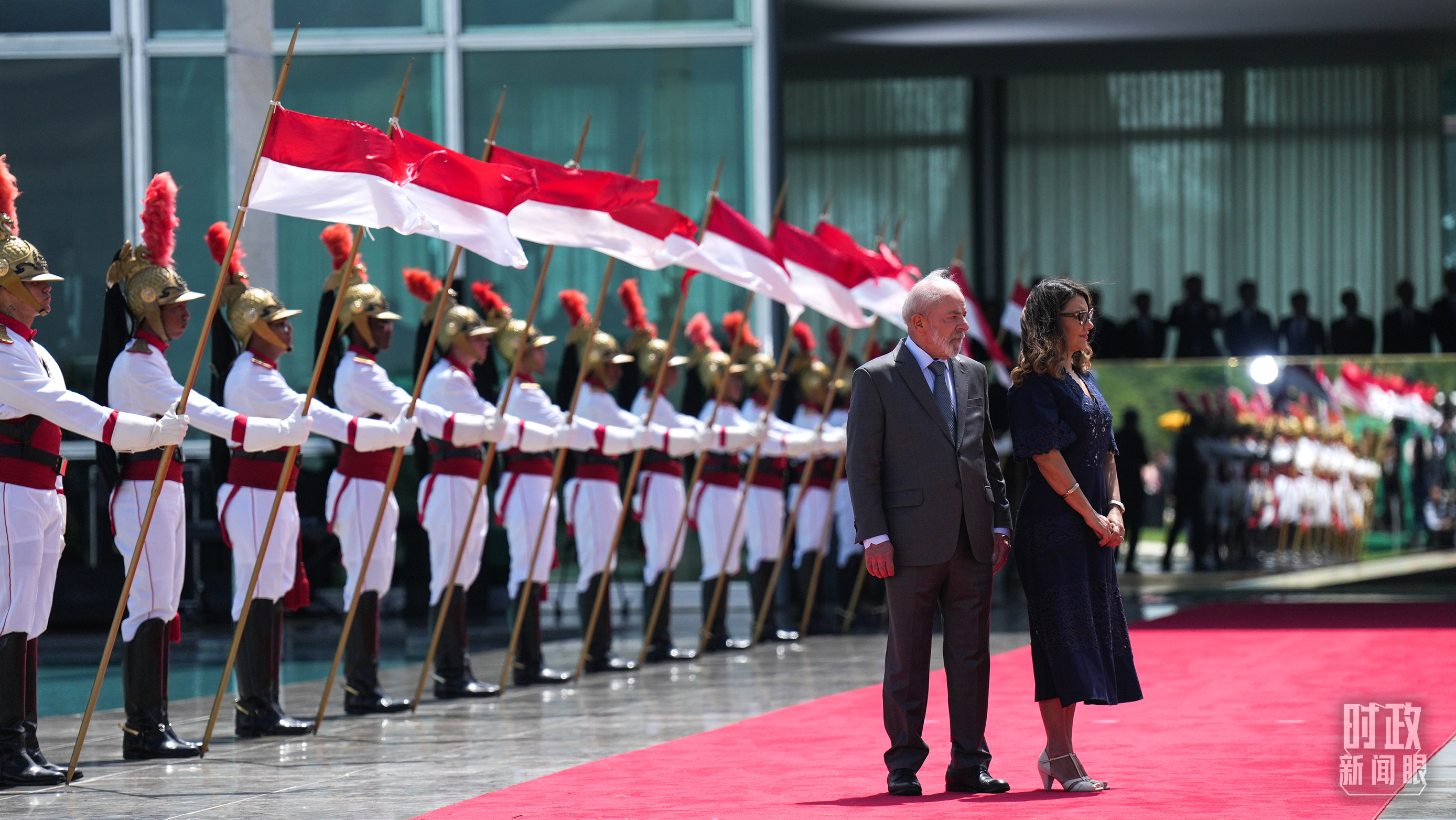 巴西總統(tǒng)盧拉和夫人羅桑等候習主席到來。