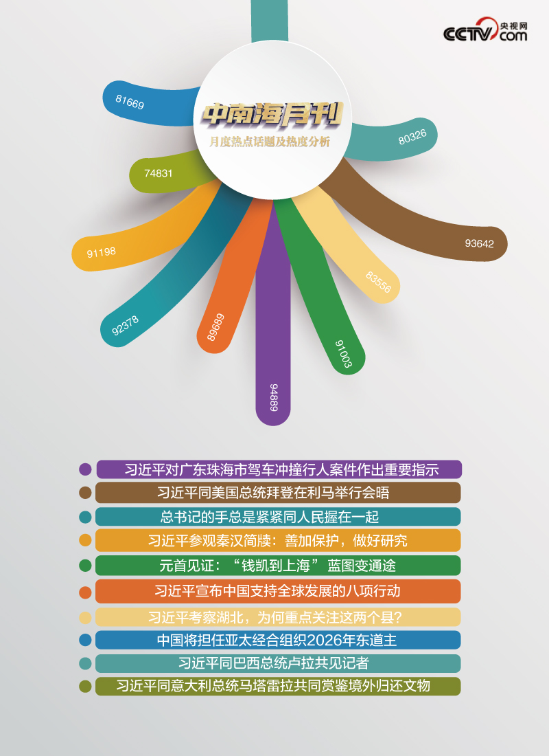 央視網(wǎng)“智聞”系統(tǒng)提取分析2024年11月全網(wǎng)時(shí)政新聞熱點(diǎn),其中總書記與人民親切互動(dòng)、世界專注傾聽中國方案等“時(shí)政微鏡頭”吸引全網(wǎng)關(guān)注。