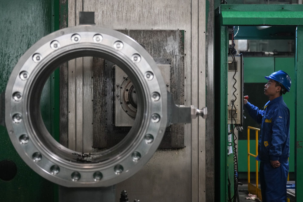 2024年1月11日,工人在大連華銳船用曲軸有限公司加工車(chē)間加工產(chǎn)品。新華社記者 潘昱龍 攝