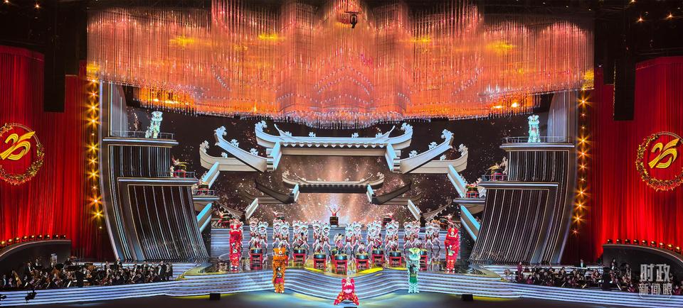 △慶祝澳門回歸祖國25周年文藝晚會現場燈光璀璨,歡樂喜慶。(總臺央視記者范學禹拍攝)