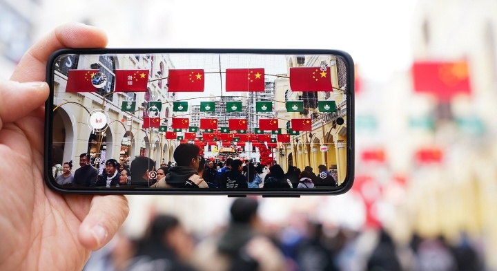 喜迎回歸祖國(guó)25周年,澳門街頭懸掛國(guó)旗區(qū)旗