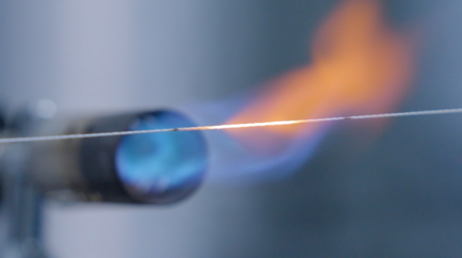 “這根絲超級耐高溫,1200℃的火焰也燒不斷它。它比頭發(fā)絲還細(xì),直徑只有7到12微米,卻能提起5公斤重物?!苯榻B,這根絲可以做成布、繩子、套管、織帶等,可應(yīng)用于石油化工、能源電力、國防安全等多個(gè)領(lǐng)域。10年研發(fā)期間,工作人員做了無數(shù)次試驗(yàn),打了幾萬個(gè)樣品,才讓它硬核出圈,填補(bǔ)了國內(nèi)高性能纖維材料的空白。