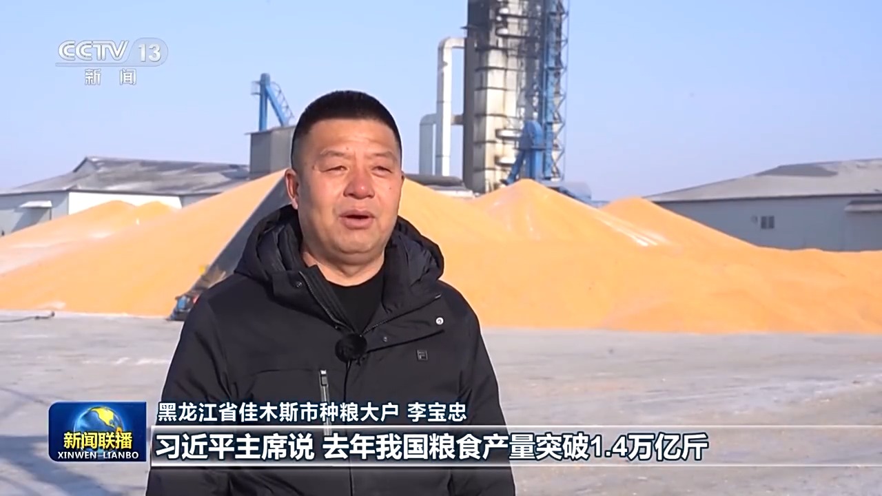 黑龍江省佳木斯市種糧大戶 李寶忠:習(xí)近平主席說,去年我國(guó)糧食產(chǎn)量突破1.4萬億斤,中國(guó)碗裝了更多中國(guó)糧。聽到這話我心里特別自豪。今年春耕之前,我們要更新購(gòu)置大型高端智能的玉米收割機(jī),我要和鄉(xiāng)親們一起加油干,在農(nóng)業(yè)現(xiàn)代化的道路上扎實(shí)走好每一步,用我們的雙手把中國(guó)飯碗端得更牢。