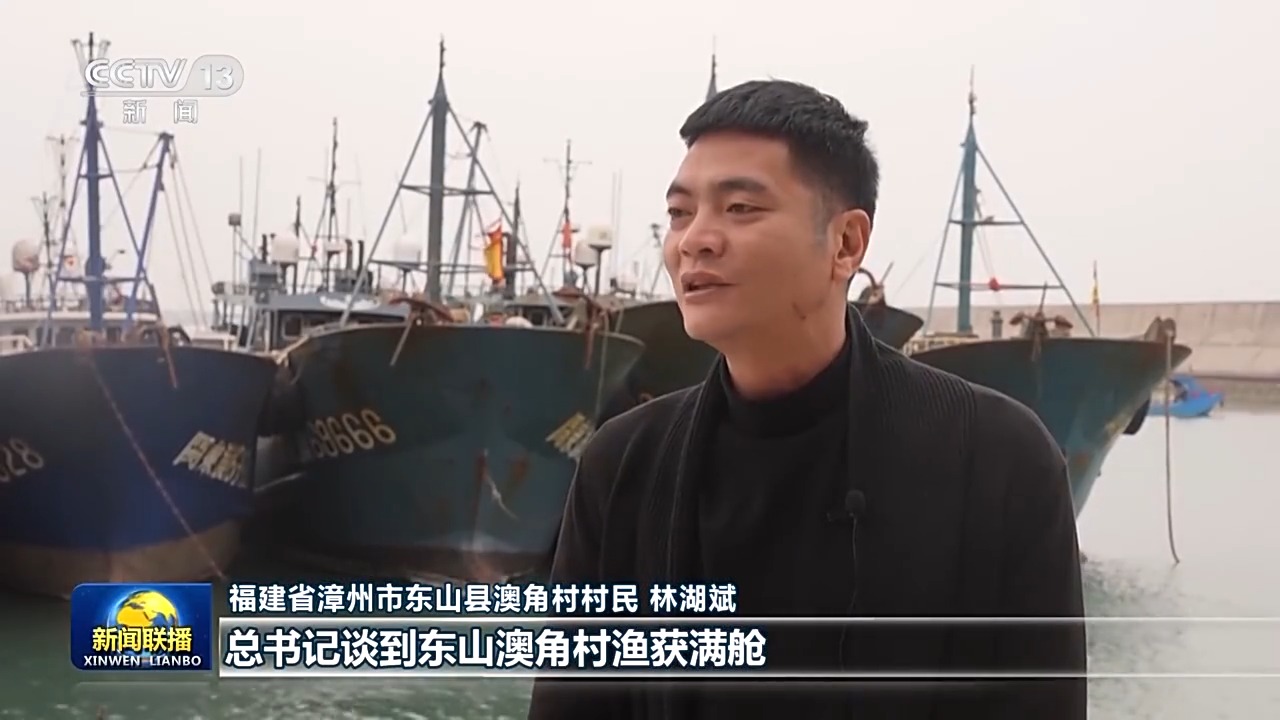 福建省漳州市東山縣澳角村村民 林湖斌:在新年賀詞中,總書記談到東山澳角村漁獲滿艙,讓我非常感動(dòng),也干勁十足。現(xiàn)在是年節(jié)期間,正是海產(chǎn)品的銷售旺季,訂單也是越來越多。我們要擼起袖子加油干,讓我們海洋漁業(yè)發(fā)展得更好,把我們澳角村建設(shè)得更美好。