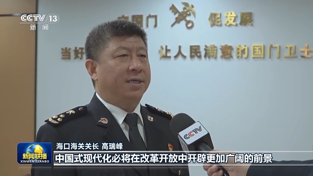 海口海關(guān)關(guān)長(zhǎng) 高瑞峰:習(xí)近平主席在新年賀詞中指出,中國(guó)式現(xiàn)代化必將在改革開放中開辟更加廣闊的前景。今年,海南自貿(mào)港將實(shí)現(xiàn)封關(guān)運(yùn)作。我們要始終沿著習(xí)近平總書記指引的方向前進(jìn),不斷深化海關(guān)監(jiān)管制度集成創(chuàng)新,努力把海南自由貿(mào)易港打造成為引領(lǐng)我國(guó)新時(shí)代對(duì)外開放的重要門戶。