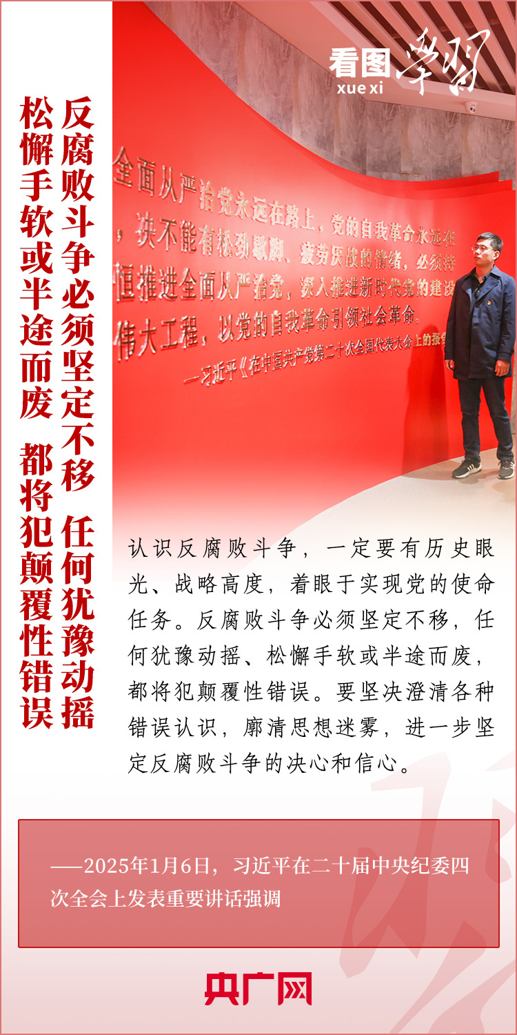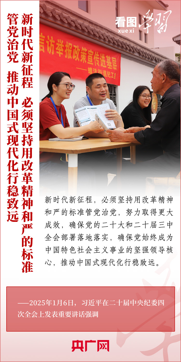 1月6日,習(xí)近平總書記在二十屆中央紀(jì)委四次全會上發(fā)表重要講話,充分肯定過去一年全面從嚴(yán)治黨取得的新進(jìn)展、新成效,深刻分析當(dāng)前反腐敗斗爭形勢,對堅決打好反腐敗斗爭攻堅戰(zhàn)、持久戰(zhàn)、總體戰(zhàn)提出明確要求。總書記強(qiáng)調(diào),新時代新征程,必須堅持用改革精神和嚴(yán)的標(biāo)準(zhǔn)管黨治黨,努力取得更大成效,確保黨的二十大和二十屆三中全會部署落地落實,確保黨始終成為中國特色社會主義事業(yè)的堅強(qiáng)領(lǐng)導(dǎo)核心,推動中國式現(xiàn)代化行穩(wěn)致遠(yuǎn)。一起來學(xué)習(xí)!