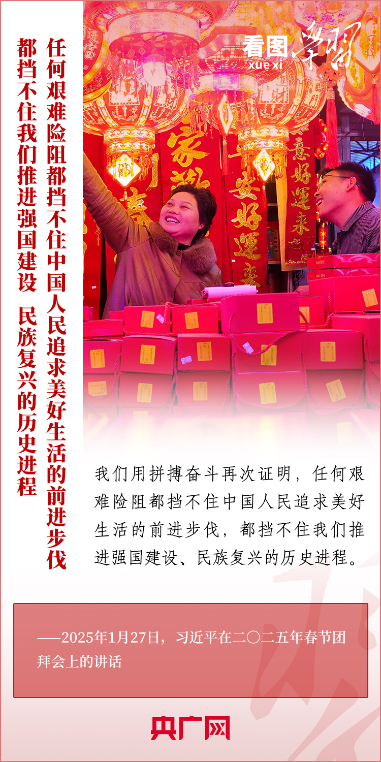1月27日,中共中央、國(guó)務(wù)院在北京舉行春節(jié)團(tuán)拜會(huì),習(xí)近平總書記發(fā)表熱情洋溢的講話,向全國(guó)各族人民、港澳臺(tái)同胞、海外僑胞拜年并致以新春祝福。總書記在講話中深情回顧過(guò)去一年中國(guó)式現(xiàn)代化取得很不平凡的發(fā)展歷程,“希望全國(guó)各族人民以蛇行千里的勁頭,堅(jiān)定信心、滿懷希望,開(kāi)拓進(jìn)取、頑強(qiáng)奮斗,共同書寫中國(guó)式現(xiàn)代化新篇章。”一起來(lái)學(xué)習(xí)!