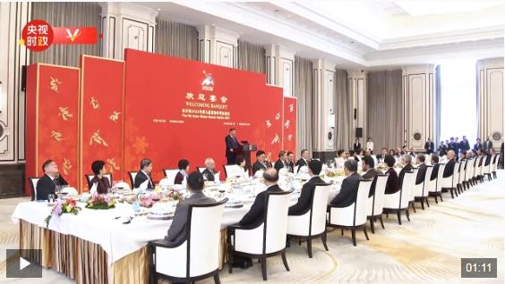 2月7日中午,國家主席習(xí)近平和夫人彭麗媛在黑龍江省哈爾濱市太陽島賓館舉行宴會,歡迎來華出席哈爾濱第九屆亞洲冬季運動會開幕式的國際貴賓。