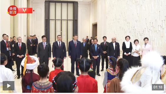 歡迎宴會開始前,40名身著中外民族服裝的少年兒童唱起優(yōu)美的黑龍江民歌《烏蘇里船歌》,熱烈歡迎國際貴賓。