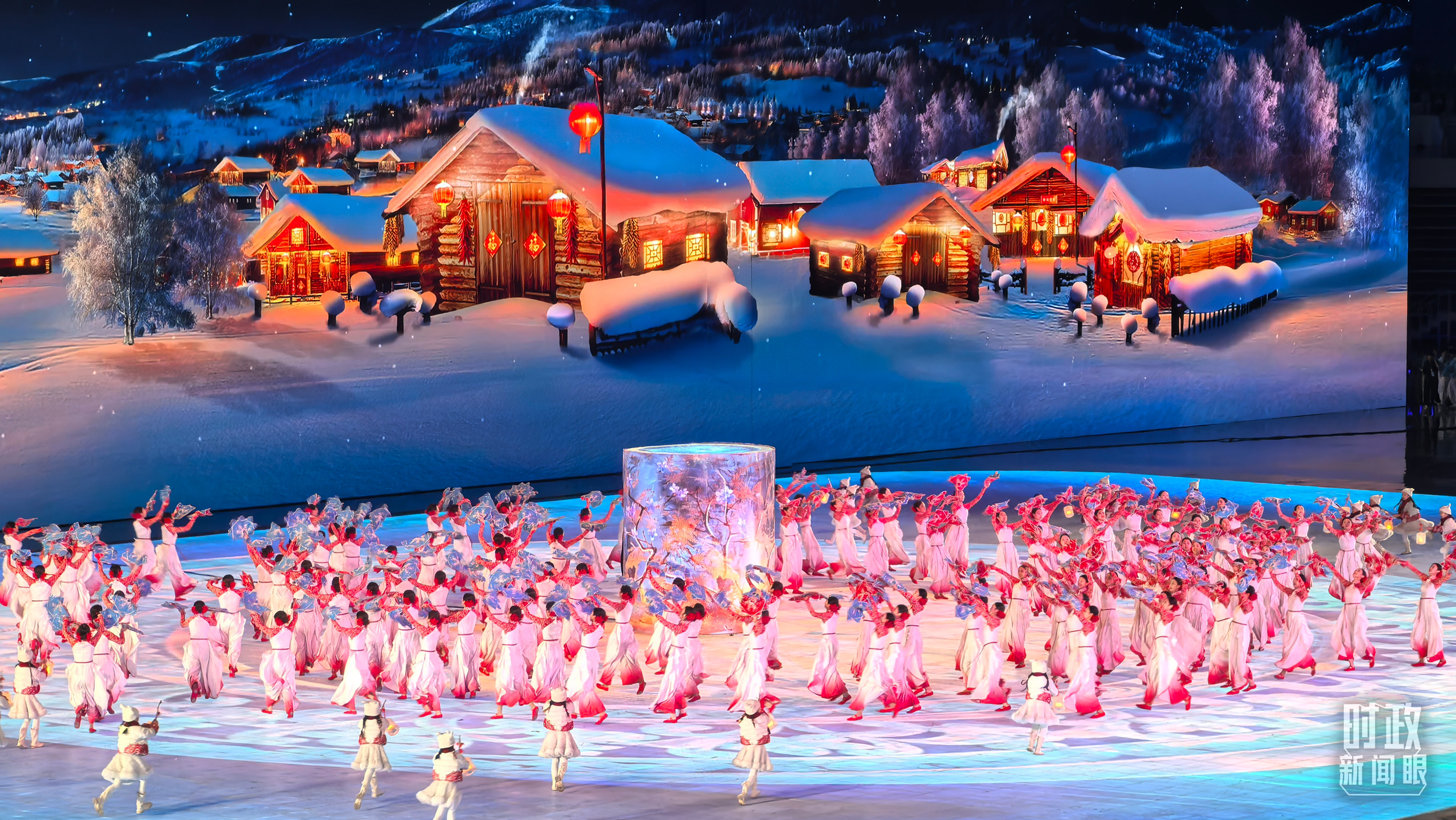 開幕式以“哈爾濱、中國、亞洲”的地域遞進(jìn)層次展開。一盞冰燈映照新春,講述從啟夢、追夢到圓夢的冰雪夢想。從“冰晶藍(lán)”到“中國紅”,旋轉(zhuǎn)的“冰凌花”盡顯喜迎八方賓朋的熱情。