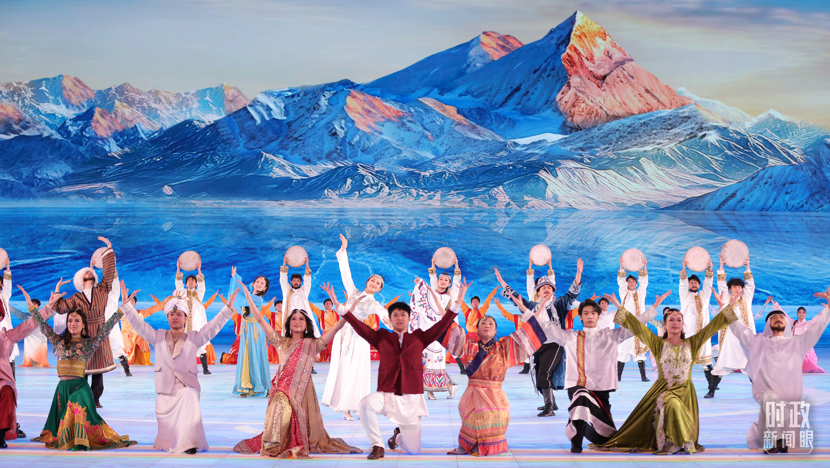 文藝表演分為上篇《熾熱冰雪》、中篇《燃情時速》、下篇《山高水長》,通過《長歌頌冰河》《榮光耀未來》《馳騁天地間》《璀璨嘉年華》《攜手情久長》《萬里共和鳴》等節(jié)目,展現(xiàn)化“極寒”為“極美”“極燃”“極暖”的意蘊。