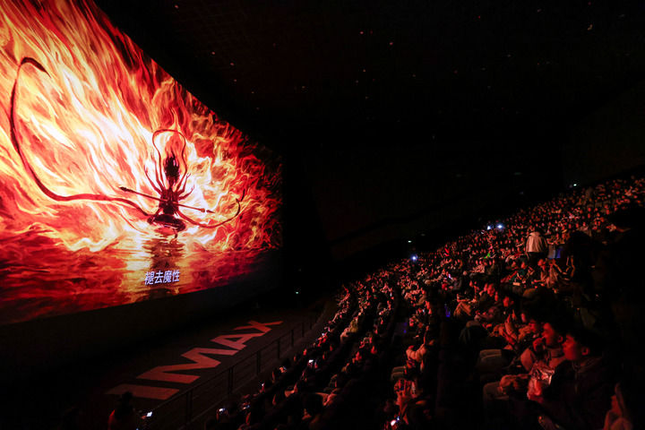 2025年2月25日,觀眾在貴陽(yáng)越界影城IMAX影廳內(nèi)觀看電影《哪吒2》。