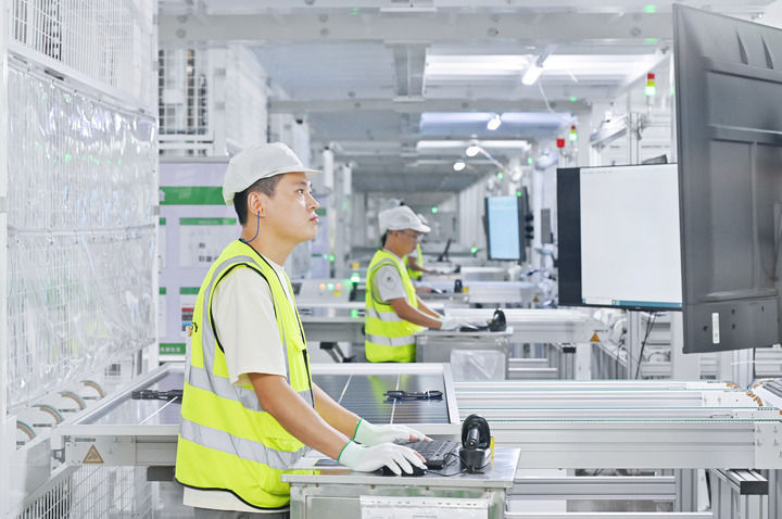 工人在位于浙江省樂清市的正泰集團(tuán)8GW高效光伏組件生產(chǎn)基地工作(資料照片)。新華社發(fā)
