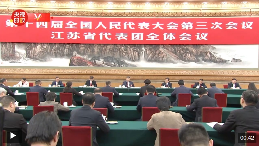 5日下午,中共中央總書記、國家主席、中央軍委主席習(xí)近平參加他所在的十四屆全國人大三次會議江蘇代表團(tuán)審議。