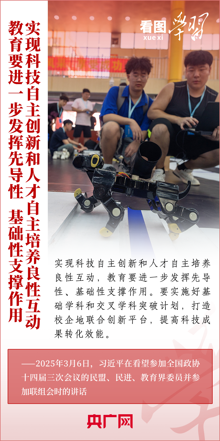 “建設(shè)教育強(qiáng)國、科技強(qiáng)國、人才強(qiáng)國,是全黨全社會的共同責(zé)任?!?月6日,習(xí)近平總書記在看望參加全國政協(xié)十四屆三次會議的民盟、民進(jìn)、教育界委員并參加聯(lián)組會時(shí)發(fā)表重要講話。總書記就做好教育、科技、人才工作作出深刻闡釋,強(qiáng)調(diào)必須深刻把握中國式現(xiàn)代化對教育、科技、人才的需求,強(qiáng)化教育對科技和人才的支撐作用,進(jìn)一步形成人才輩出、人盡其才、才盡其用的生動(dòng)局面。一起來學(xué)習(xí)!