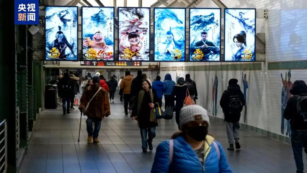 △《哪吒2》海報(bào)亮相美國紐約多個(gè)地鐵站。