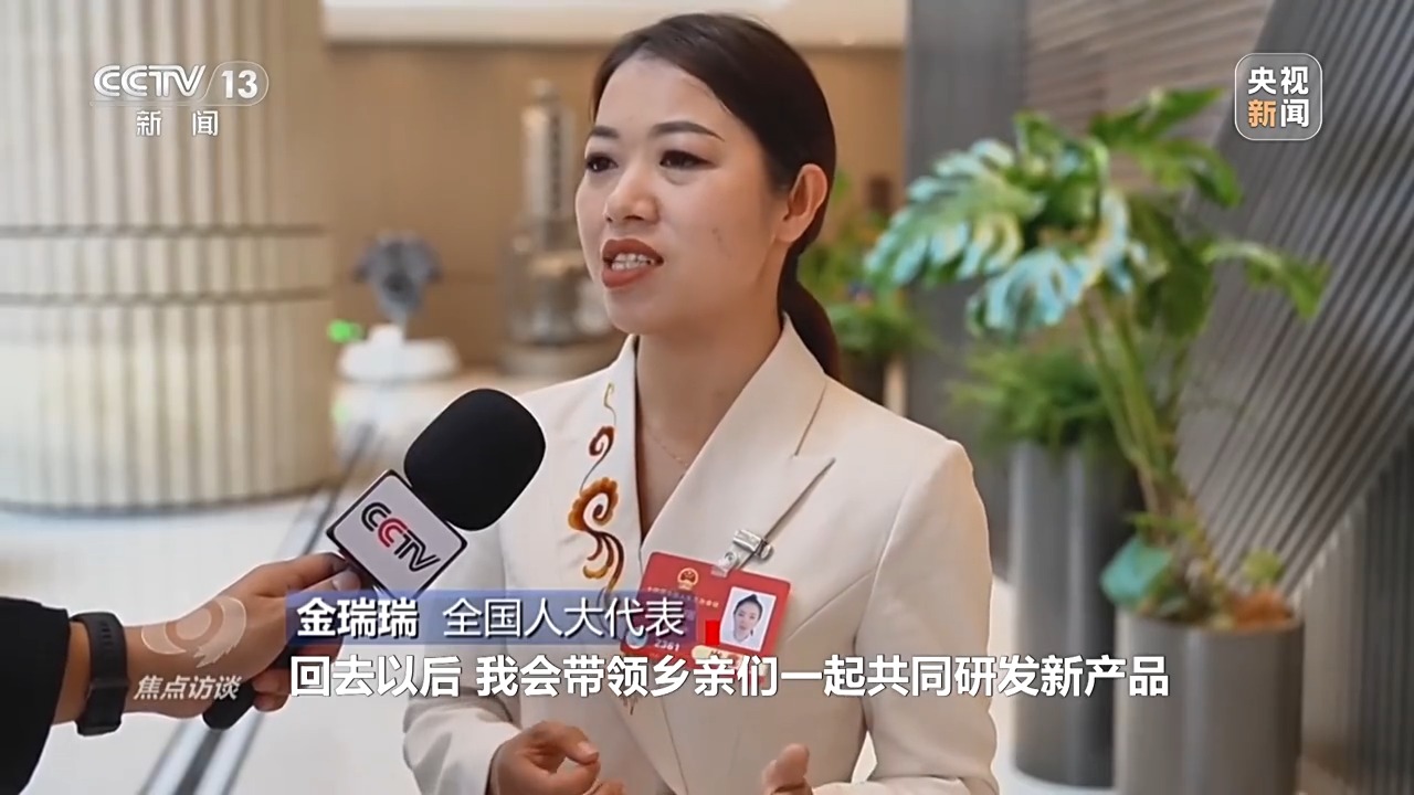 全國人大代表 金瑞瑞:方向和路徑都非常清晰,回去以后,我會帶領(lǐng)鄉(xiāng)親們一起共同研發(fā)新產(chǎn)品,把非遺手工的技藝傳承好和發(fā)揚(yáng)好,帶著鄉(xiāng)親們共同賺錢,把全國兩會擘畫的美好愿景轉(zhuǎn)化為實(shí)實(shí)在在的成績和收獲。